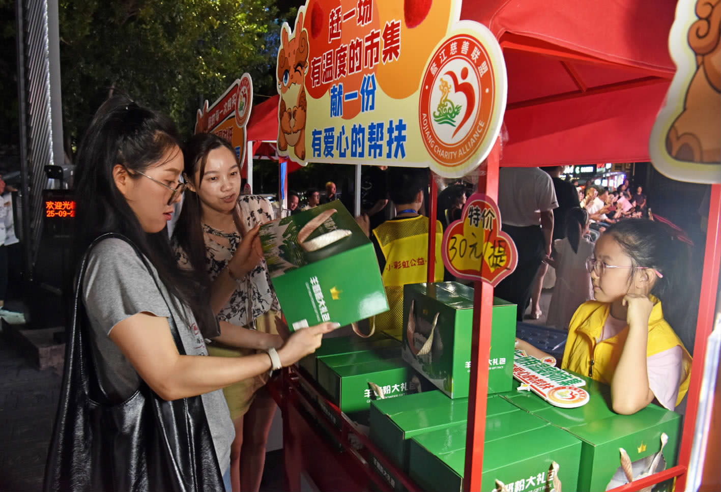 9月27日晚,由鳌江镇主办的“炬光之乐·与善同行”主题晚会暨“鳌江慈善联盟帮扶救助基金”首批爱心商家授牌仪式在鳌江彩虹湾广场举行。现场设义卖专区,吸引众多市民驻足参与“消费即慈善”公益新模式。活动为首批30家爱心商家代表授牌,并公布当晚义卖善款捐赠情况。鳌江慈善联盟将持续深化“善商联动”,通过定向捐、消费捐、结对捐等多元化参与方式,引导更多力量参与,推动商业与慈善相互赋能。